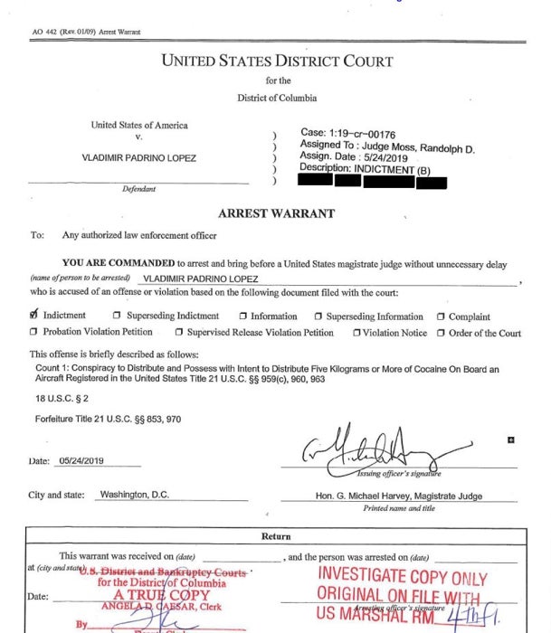 La Justicia de EE.UU. acusa a Padrino de permitir vuelos con cocaína a cambio de sobornos